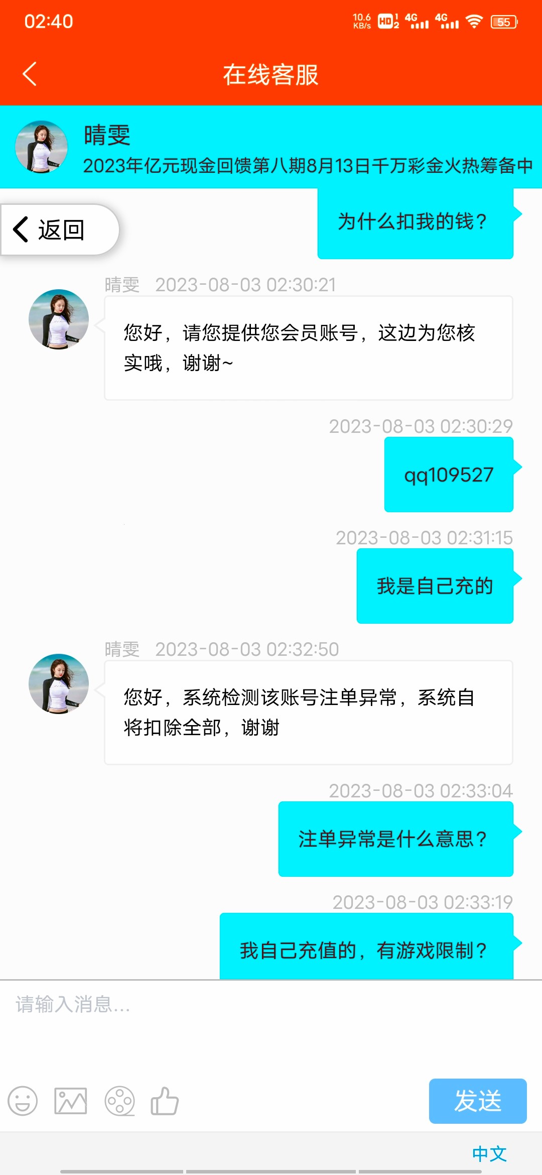 这个傻逼台是我玩过这系列最黑的一个 充值的也黑 冲了100想着拉拉电子等球赛 然后爆了600多块钱直接给你提现末入了 说非法投注 真恶心坏了