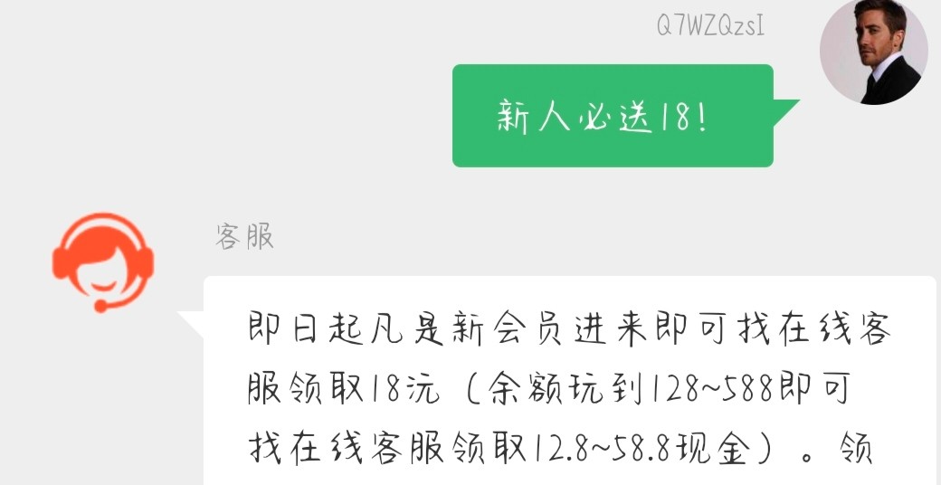 微信扫码登录联系在线客服申请18体验金,玩到128就可以下12.8最高588下分58.8