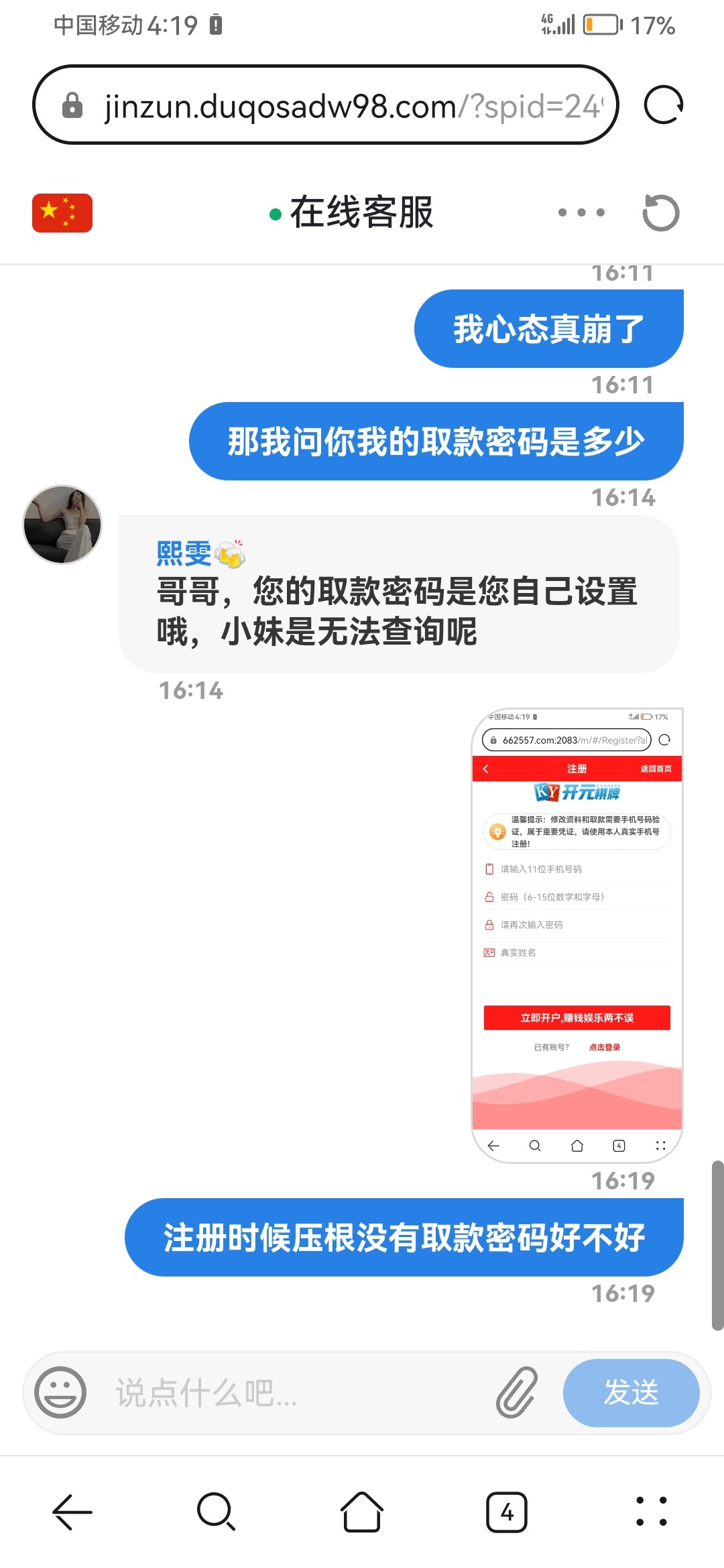 乔治 ▶ qq715300 手机号填错怎么注册的,???可以基本确定是黑台纯骗钱,存了出款直接冻结 2023-10-10
