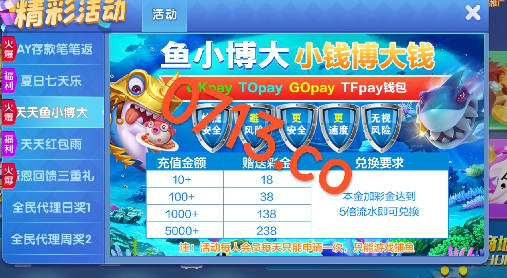 用手机号注册别用游客微信 注册秒31 以小博大10+18 5倍流水 限制捕鱼游戏 最低100提款(只能用ok to go tf 钱包存取)亲测已送