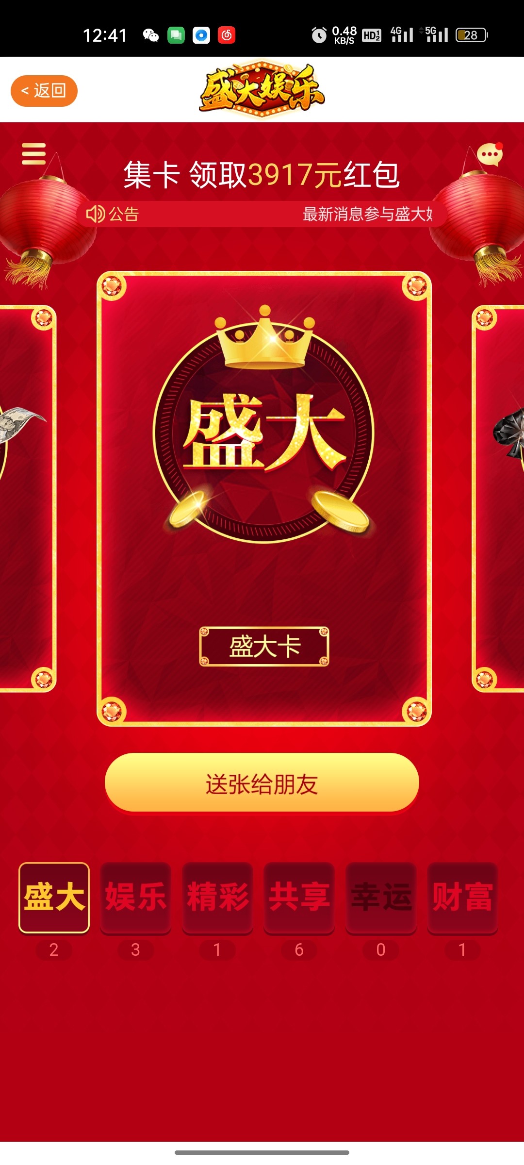 求一张盛大娱乐的幸运卡