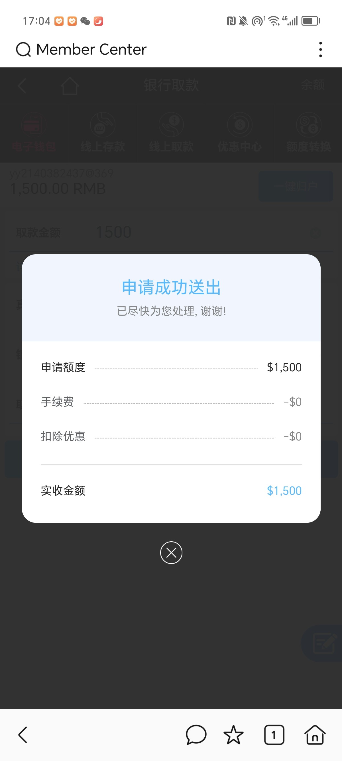 一直打码不足,后面打了500提款到了!