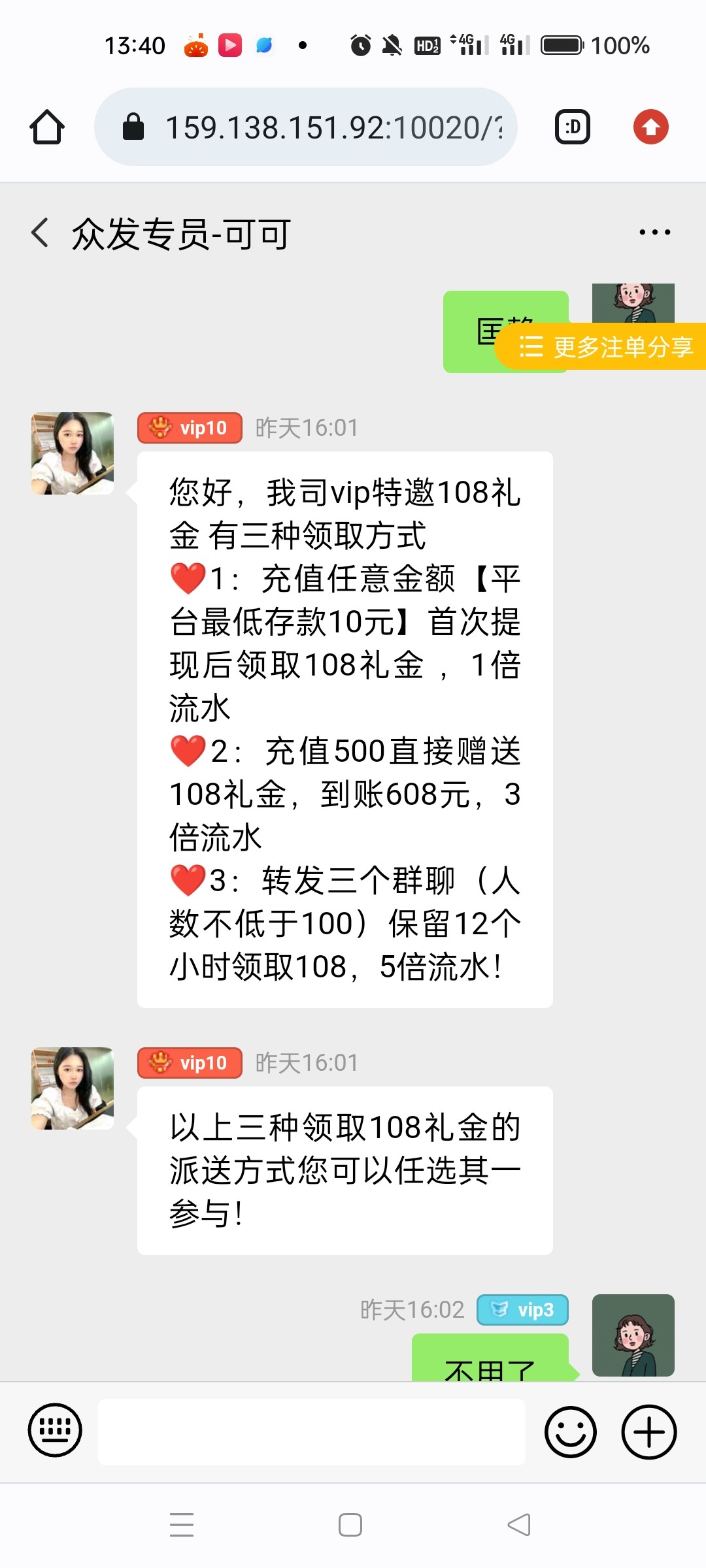 送我了108,打到600提现让我充值同等金额哈哈