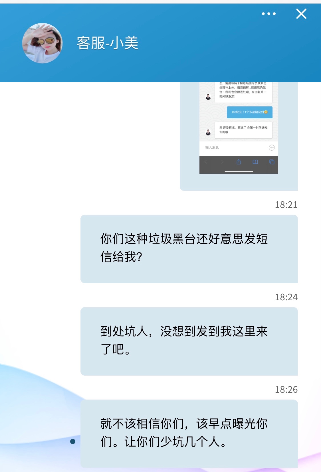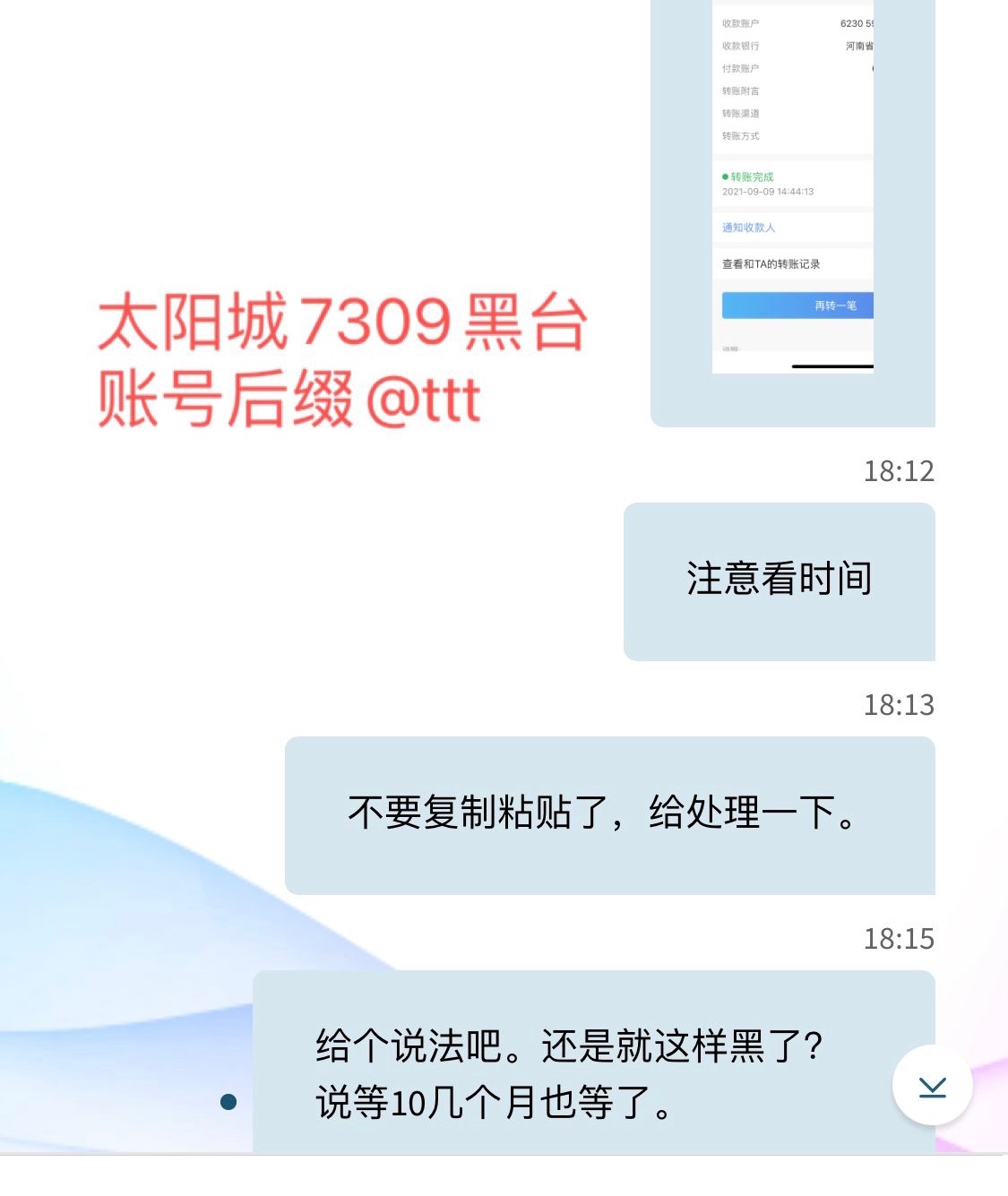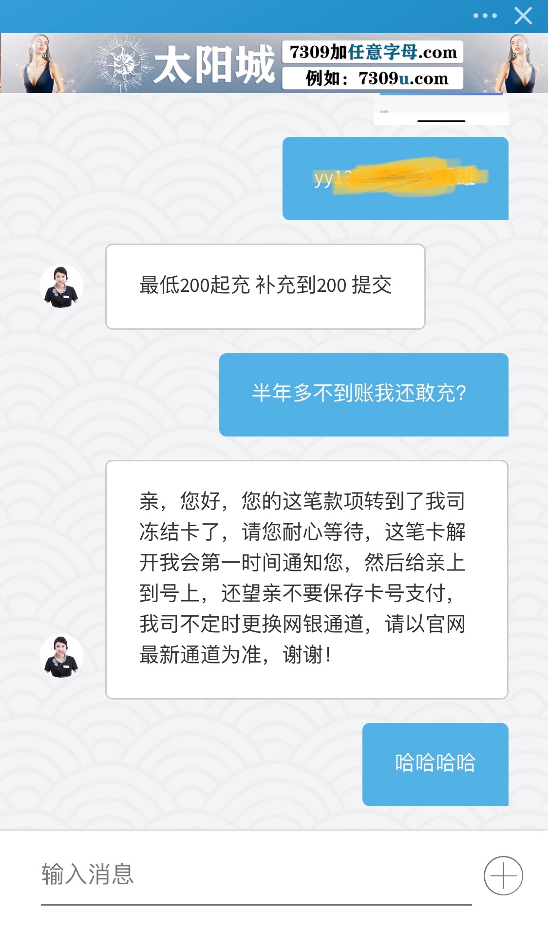 一直各种借口,开始说等一会上分,后面说卡被冻结。