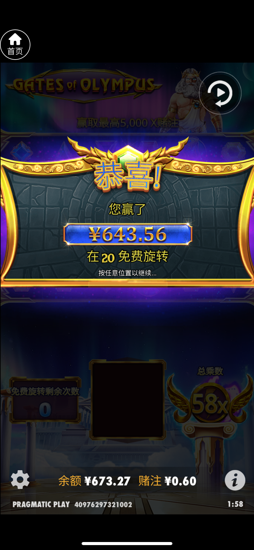 前面参加首存44加66上了500,后边晚上无聊打打就充了30玩玩摇pp不到十下就进了直接千倍,第一个这么给的台,也是来了