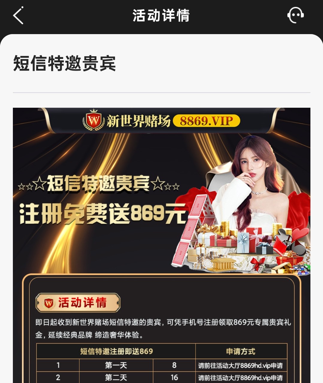 新用户注册绑卡 去申请网站自助申请特邀彩金 第一天8 第二天16 游戏和提款限制自行查看优惠