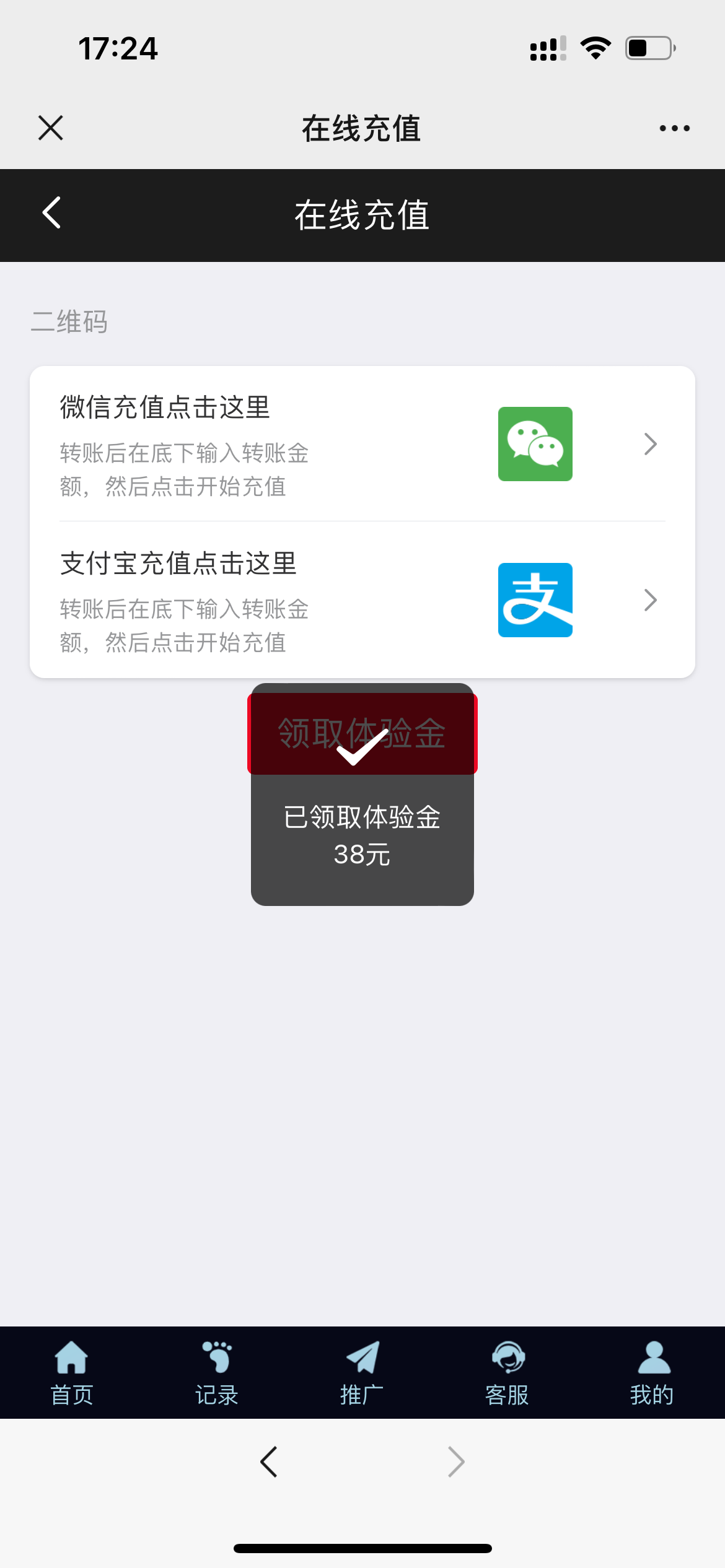 登录直接点击充值领取38体验金