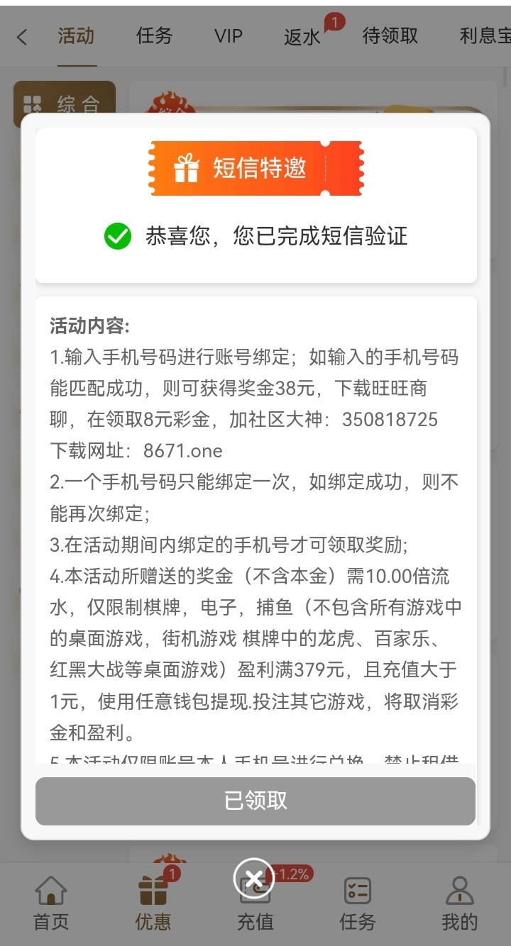 碰瓷短信特邀,输手机号验证码自助领取38