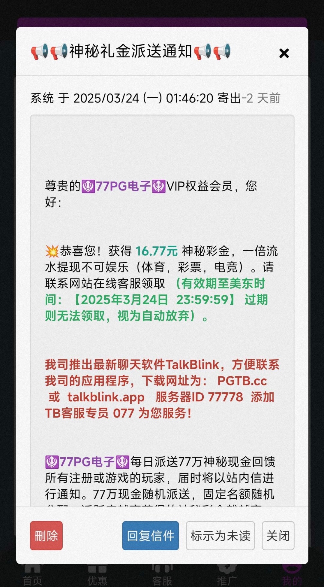 有号的兄弟上号看看站内信有没有,联系客服领彩金,一倍流水