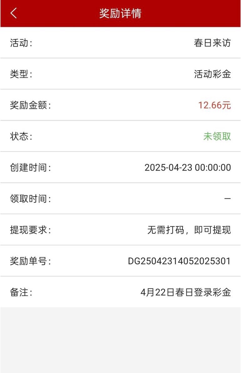 春日登入彩金派发了,昨天登入的兄弟上号领彩金