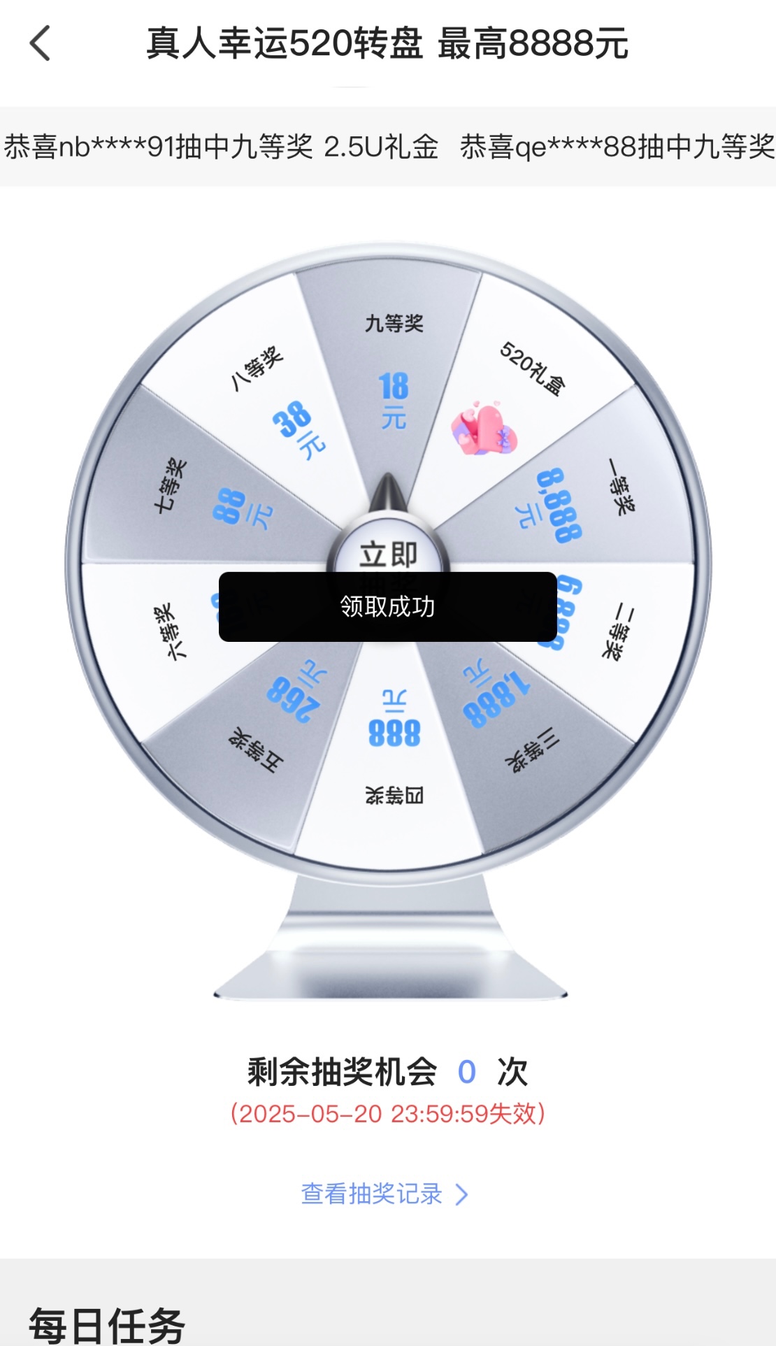 有号的兄弟可以上号送一次抽奖最低18彩金