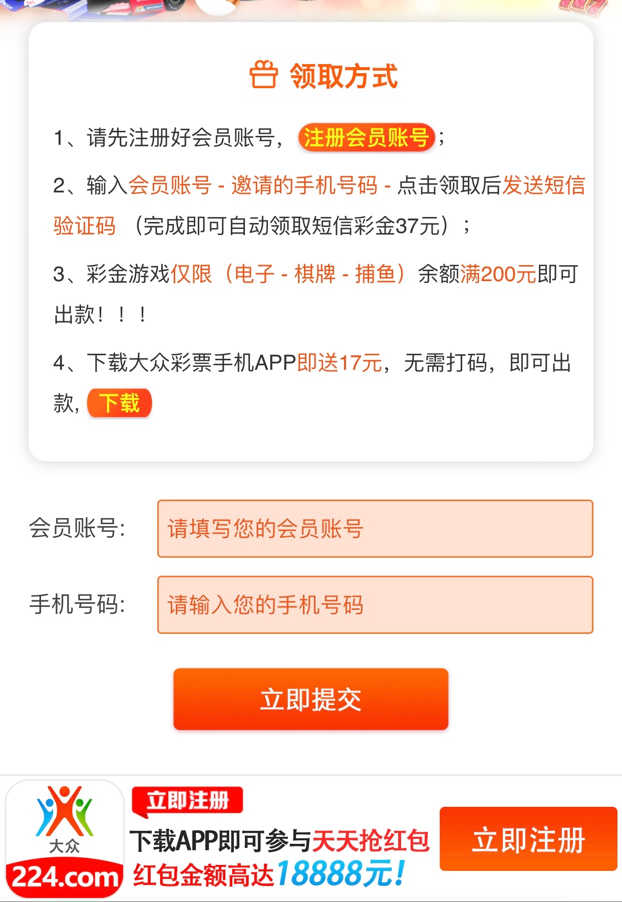 老白菜了,以前没有申请到的老哥可以去看看现在是不是特邀了,我的就是以前没申请到现在申请到了,先试试手机号能不能收到验证码,能收到注册申请秒37彩金,没收到就不是特邀