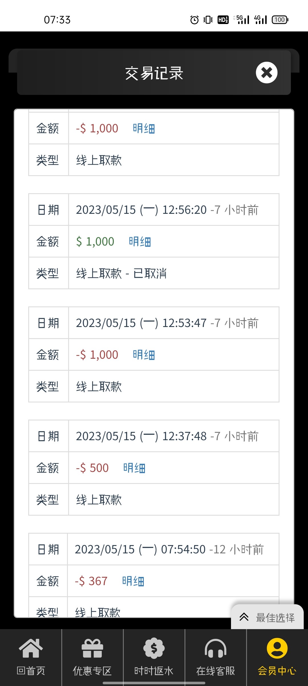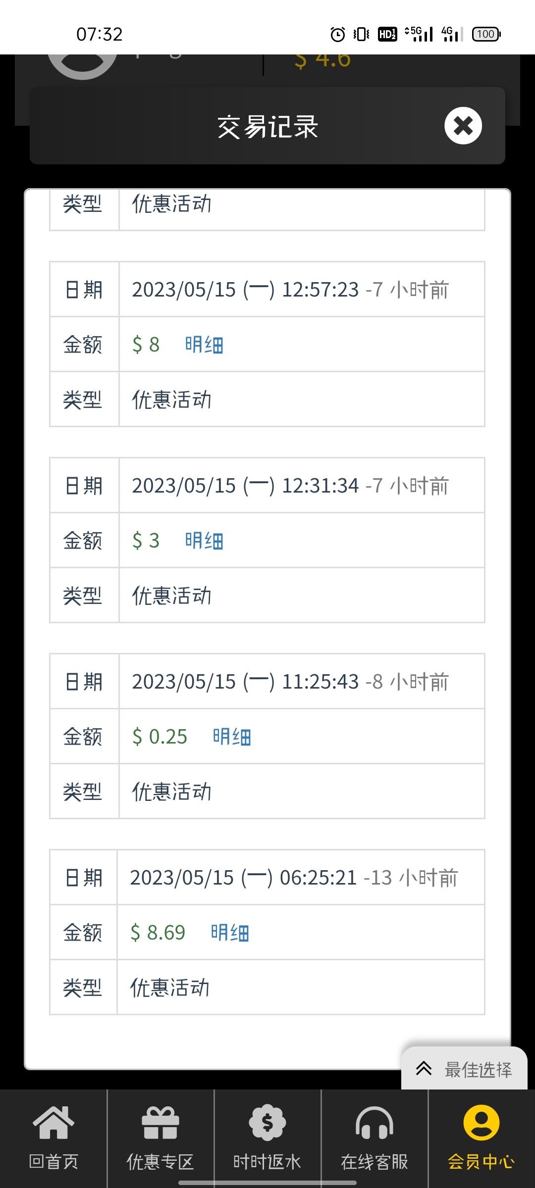 回馈五块上到八十上不去了 又充值了八十提了300到账