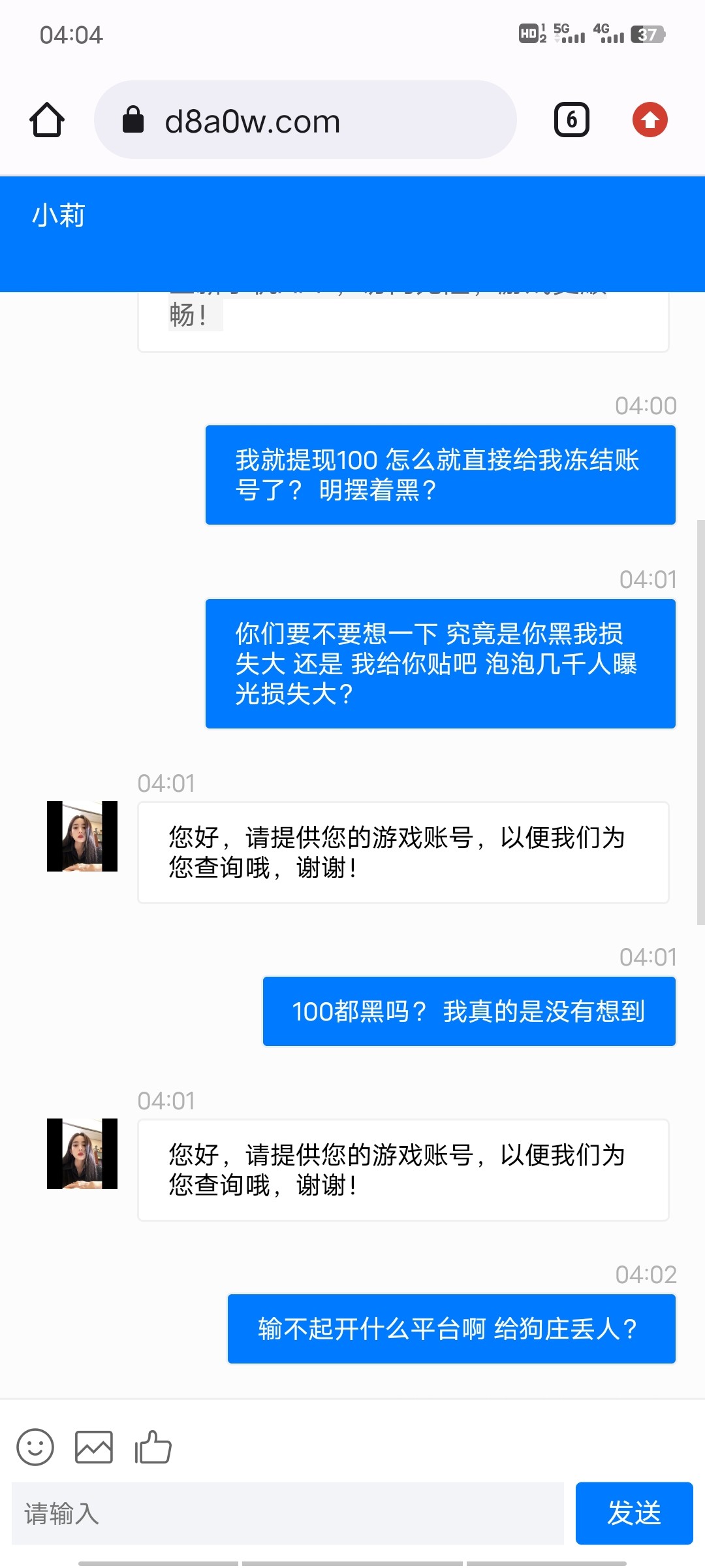 充值20打到120提款直接秒冻结 纯黑野鸡钛 注意避坑 不要上当 遇到直接骂就行