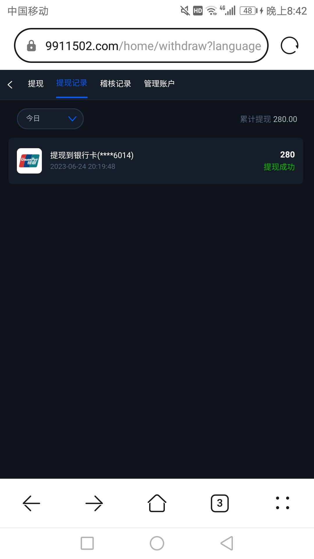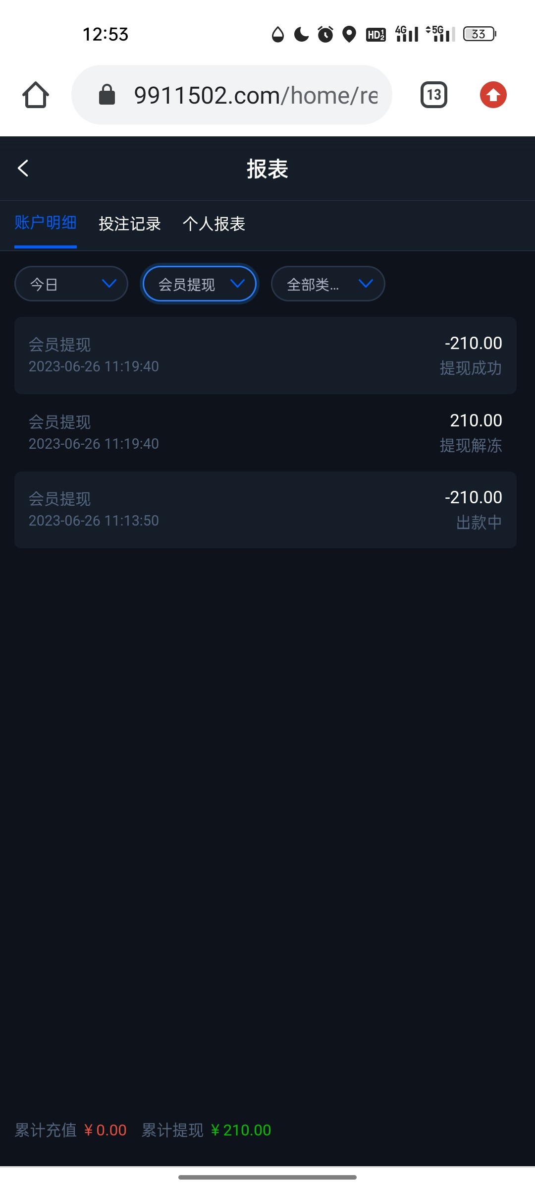 没希望了。半天一直出款中