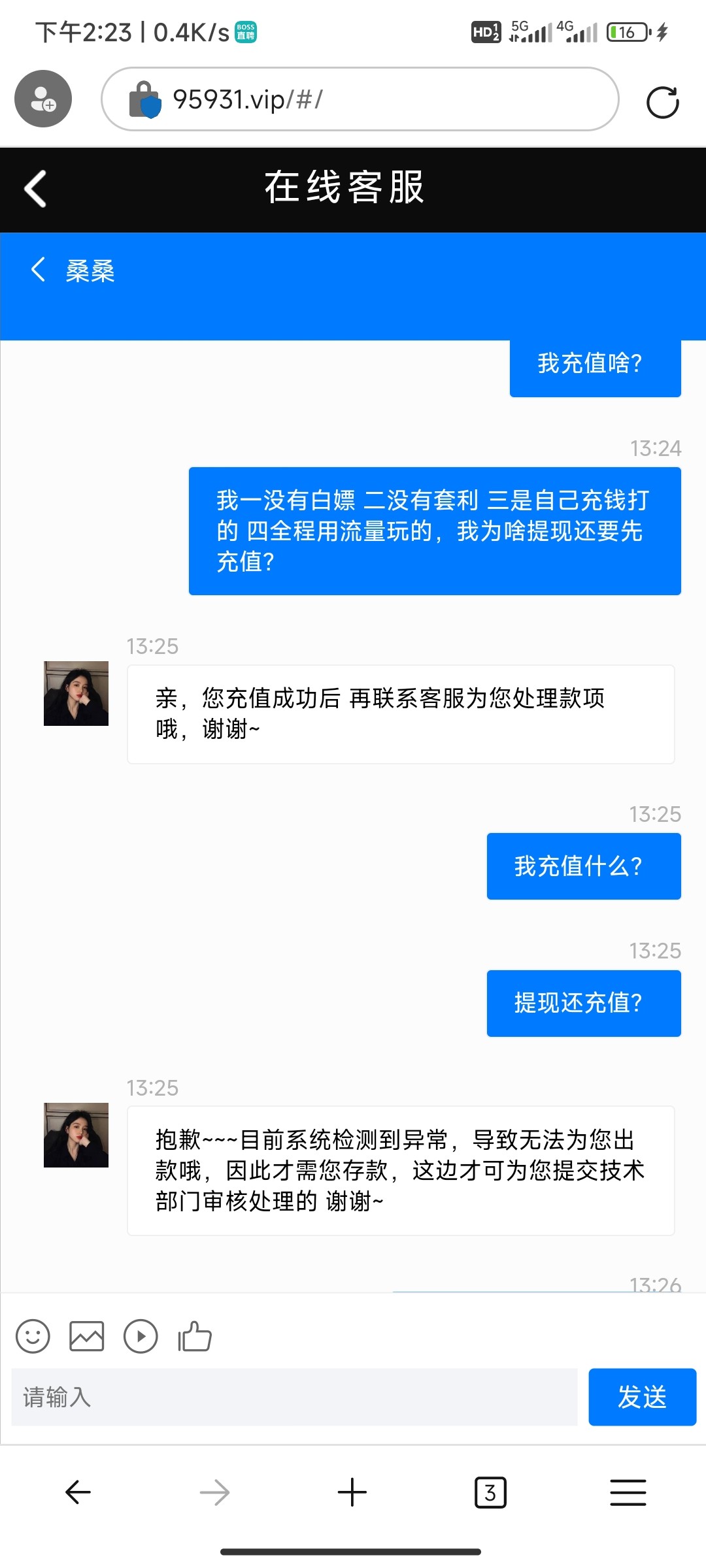 千万别冲,你要是充了五千就让你再充五千然后再充一万!最后拉黑你!