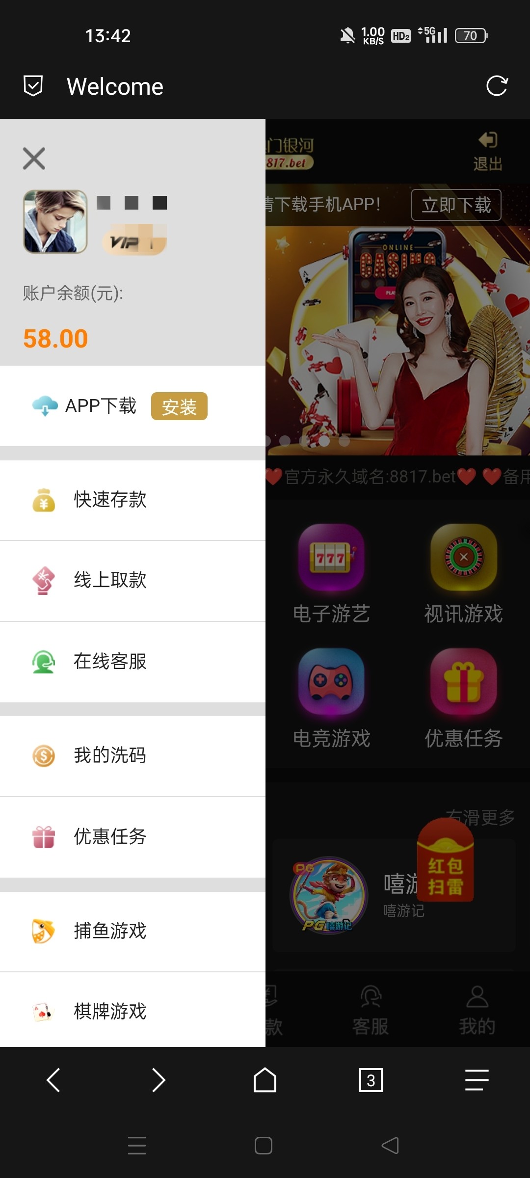 老用户登录回馈58,自己看看有没有有号的登录看看送不送